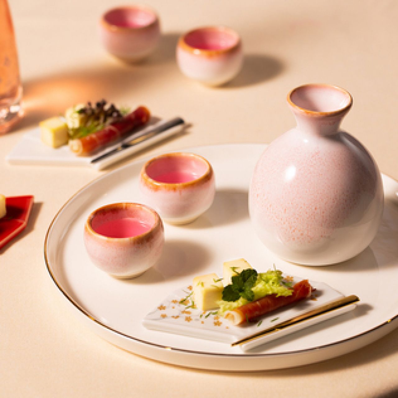日本原产舍米蓝樱粉酒具五件套装(一壶四杯)